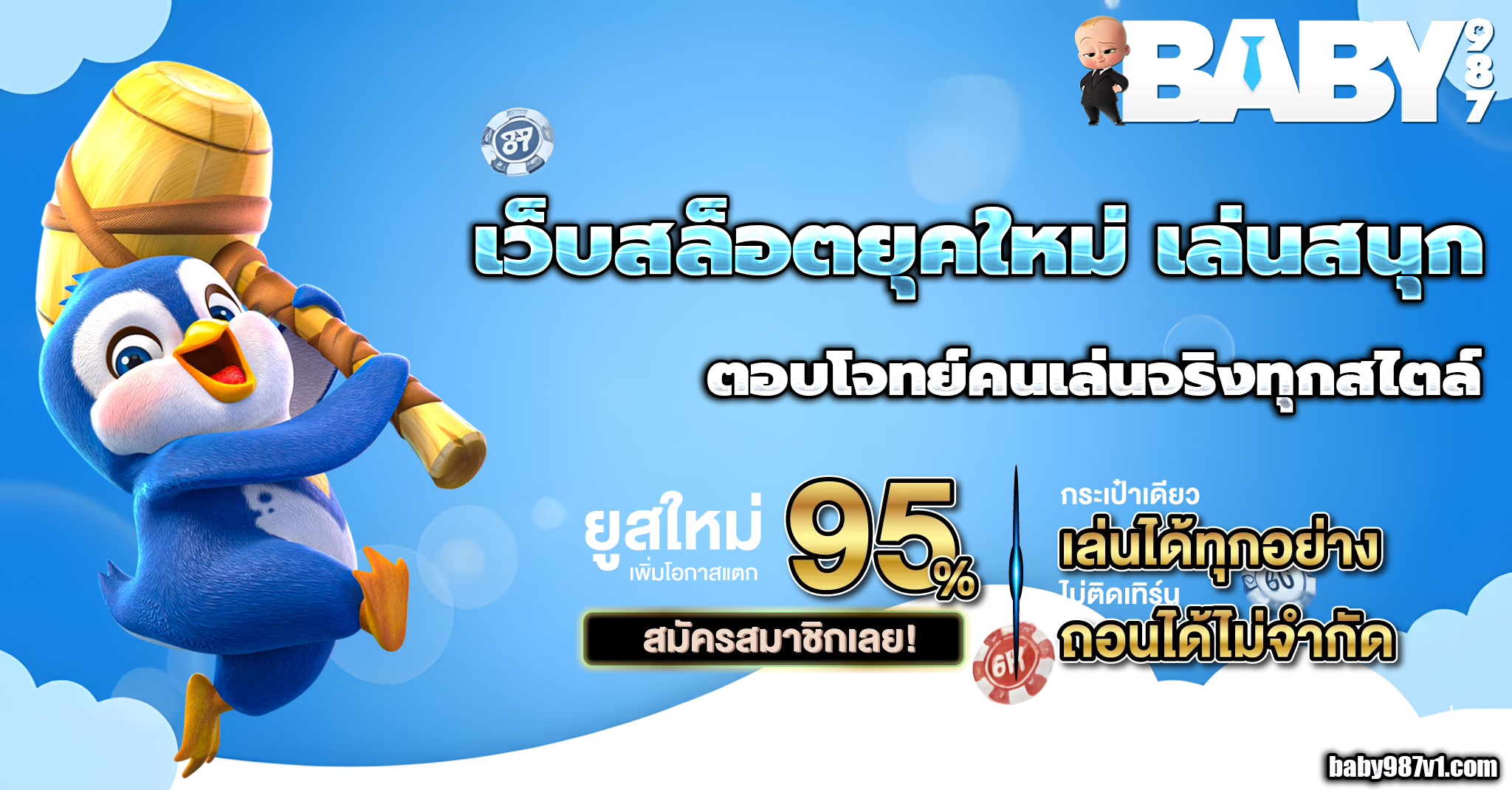 ที่ baby987 เราเชื่อว่าประสบการณ์การเล่นพนันออนไลน์ที่ดีต้องมาพร้อมกับความคุ้มค่าและความปลอดภัย นั่นคือเหตุผลที่เราไม่หยุดพัฒนาและปรับปรุงบริการของเราอย่างต่อเนื่อง เพื่อให้สมาชิกทุกคนได้รับความพึงพอใจสูงสุด