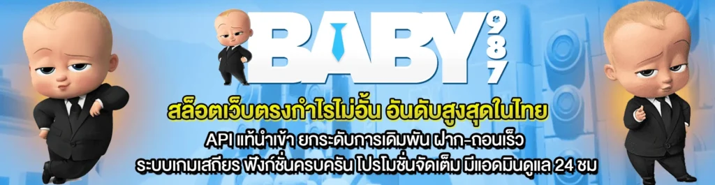 Baby987 เว็บพนันออนไลน์ครบวงจรที่รวบรวมเกมการพนันไว้มากมาย ทั้งคาสิโนสด สล็อต กีฬา และหวย ด้วยระบบที่ทันสมัย รองรับการเล่นผ่านมือถือและคอมพิวเตอร์ได้ตลอด 24 ชั่วโมง มาพร้อมระบบฝาก-ถอนอัตโนมัติที่รวดเร็วภายใน 30 วินาที ตอบโจทย์นักพนันยุคใหม่ที่ต้องการความสะดวกสบาย นอกจากนี้ยังมีโปรโมชั่นและกิจกรรมพิเศษมากมายให้ร่วมสนุก พร้อมทีมงานคอยให้บริการตลอดเวลา ทำให้ Baby987 เป็นจุดหมายของนักพนันที่ต้องการประสบการณ์การเดิมพันออนไลน์ที่ครบครัน ปลอดภัย และน่าเชื่อถือ